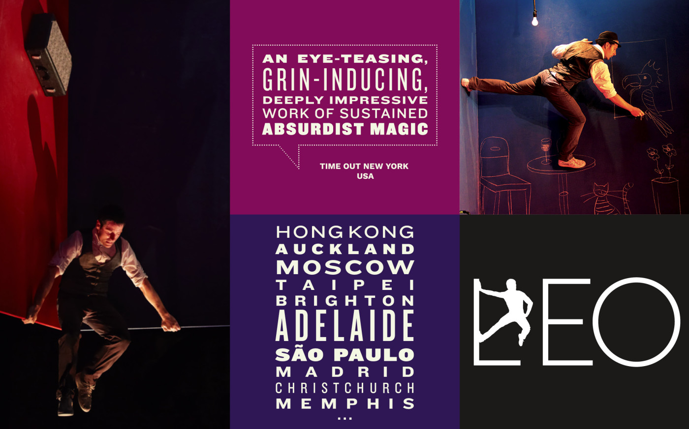 Directed by the Montréal actor and director Daniel Brière, and based on an original idea by the multi-talented performer Tobias Wegner, LEO has won several major awards including the Carol Tambor Best of Edinburgh Award, the Three Weeks Editors Award, the Scotsman Fringe First Award at the Edinburgh Fringe Festival and the John Chataway Award for Innovation at the Adelaide Fringe Festival.